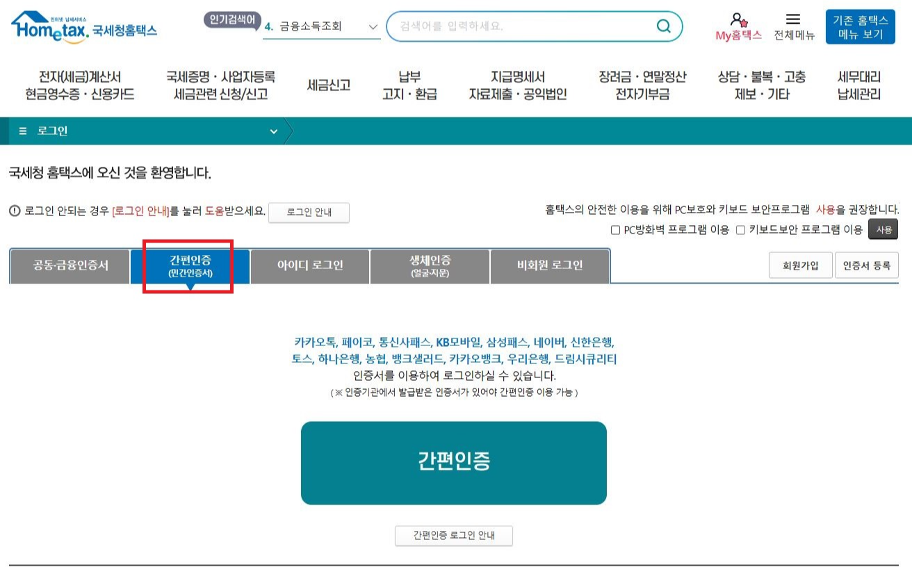 (2) 홈텍스에 접속하여 간편 인증을 통해 로그인해 주세요.