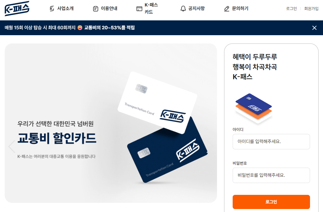 (2) K패스 앱 또는 홈페이지 접속