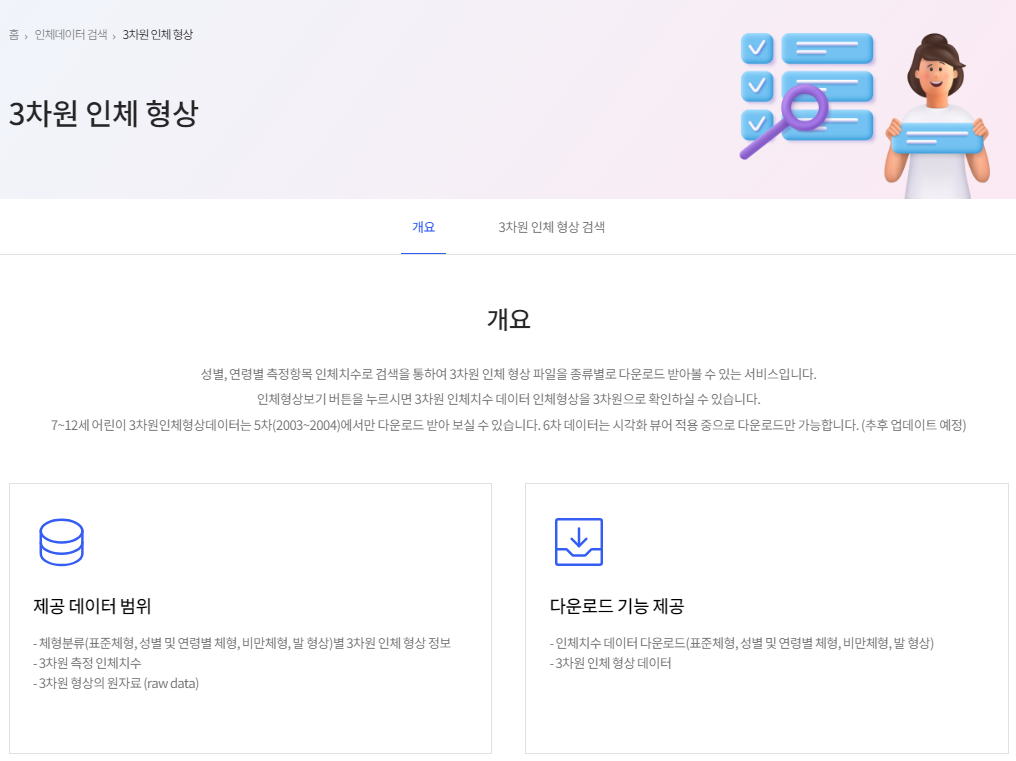 - 인체 치수 데이터를 활용한 연구 및 산업 활동을 지원합니다.