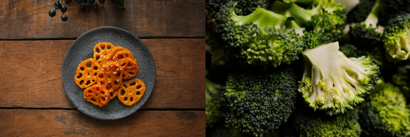 - 브로콜리: 비타민 C가 풍부하여 면역력을 높이고 항산화 작용을 합니다. 브로콜리를 데쳐서 먹거나, 볶아 먹는 것이 좋습니다.