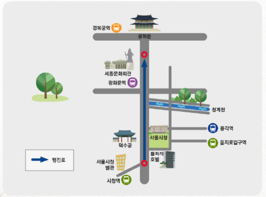 (2) 시가행진 : 16:00 ~ 17:00 / 서울 광화문 일대 (숭례문 ~ 광화문)