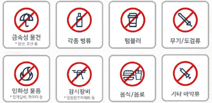 - 반입금지물품 소지 시 행사장 입장이 제한되니, 물품보관소에 보관하시고 입장해야 합니다.