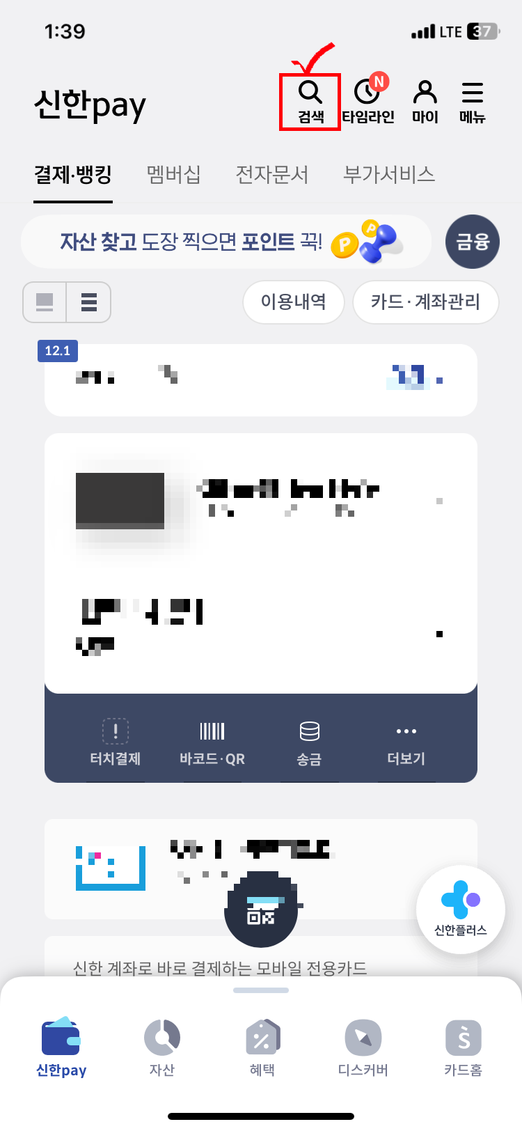 (3) 신한카드 어플 기준으로 신한카드 어플접속하여 로그인합니다.