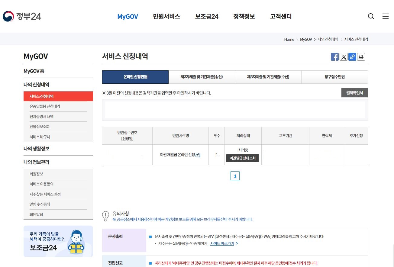 처리기간도 접수 신청과 동일하다고 하니 이제는 편하게 온라인 재발급 신청하세요!