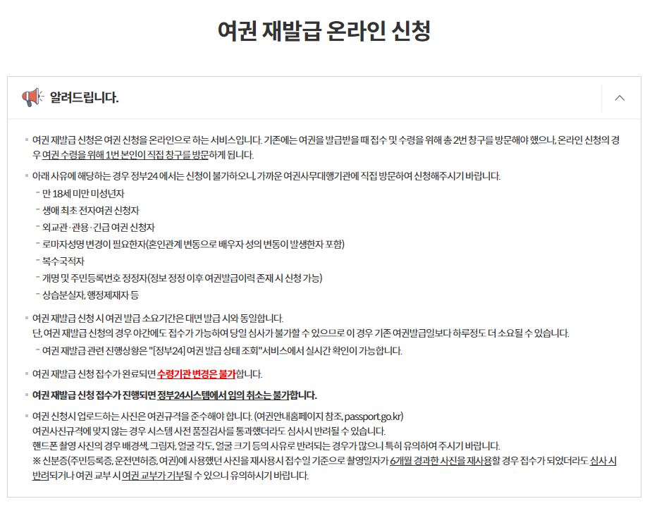 - 여권 재발급 온라인 신청 서비스는 온라인으로 재발급받는 서비스입니다.
