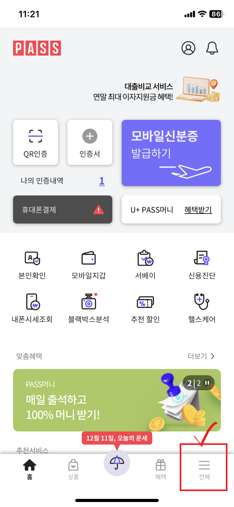 2. PASS앱을 통해 나의 핸드폰 통신사 확인하는 방법