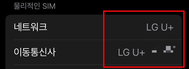 아이폰의 경우 (설정-일반-정보-이동통신사 확인)