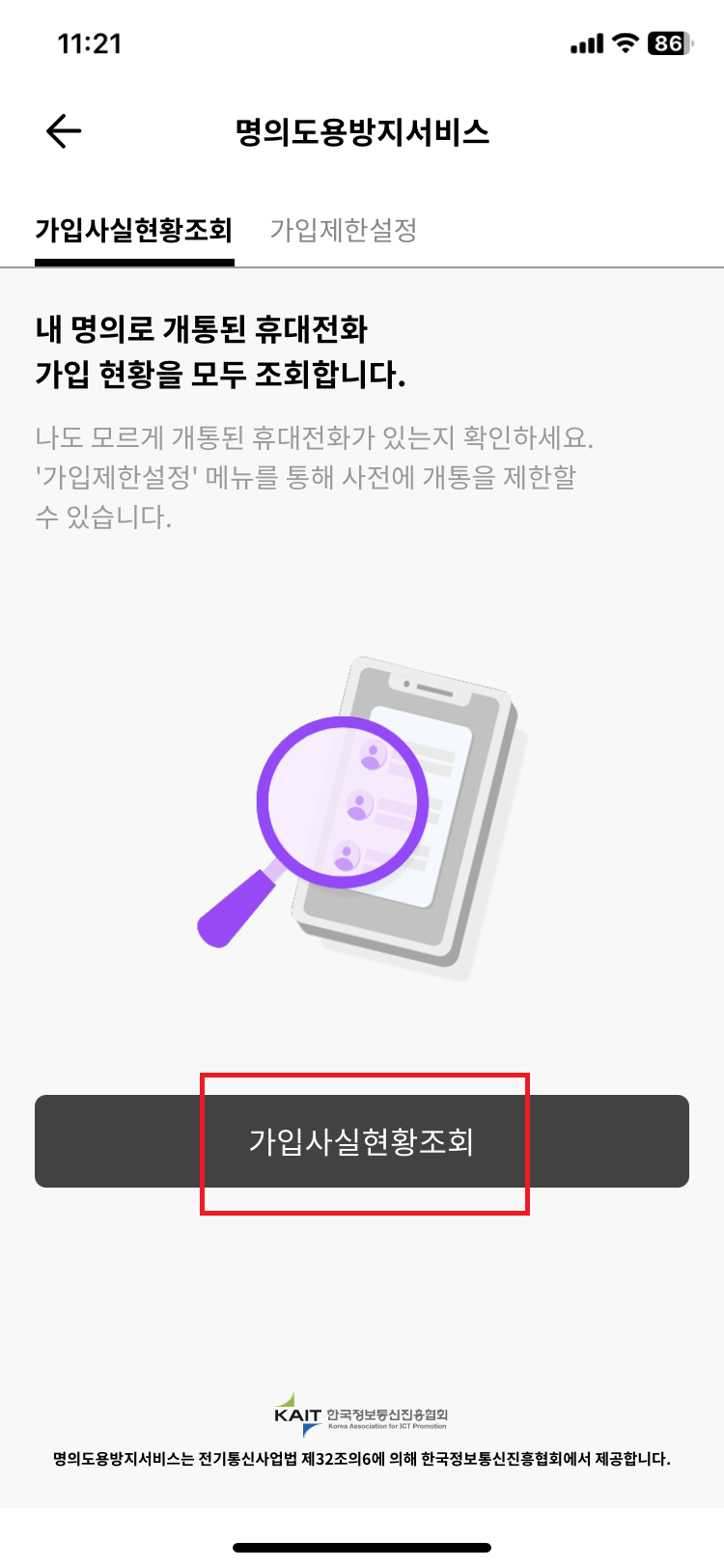 (4) 간단한 본인인증을 통해 나의 명의로 가입되는 것을 허용 또는 개통제한을 설정할 수 있습니다.