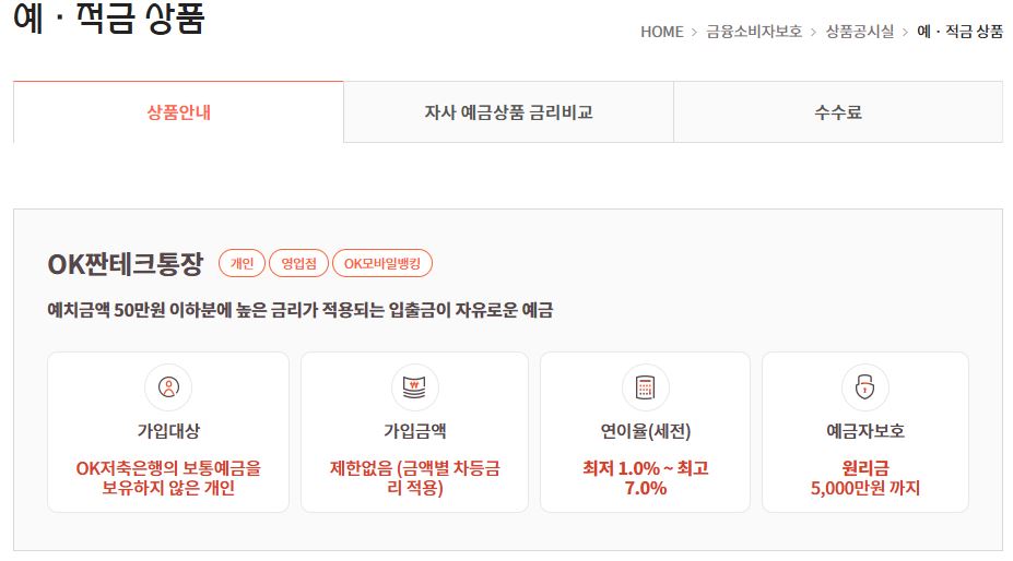 | 가입방법 | OK모바일뱅킹App 또는 영업점 방문 |