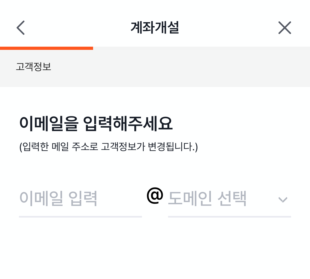 (5) 계좌선택 후 '약관 동의 및 고객 정보'를 안내에 따라 등록해 주세요.