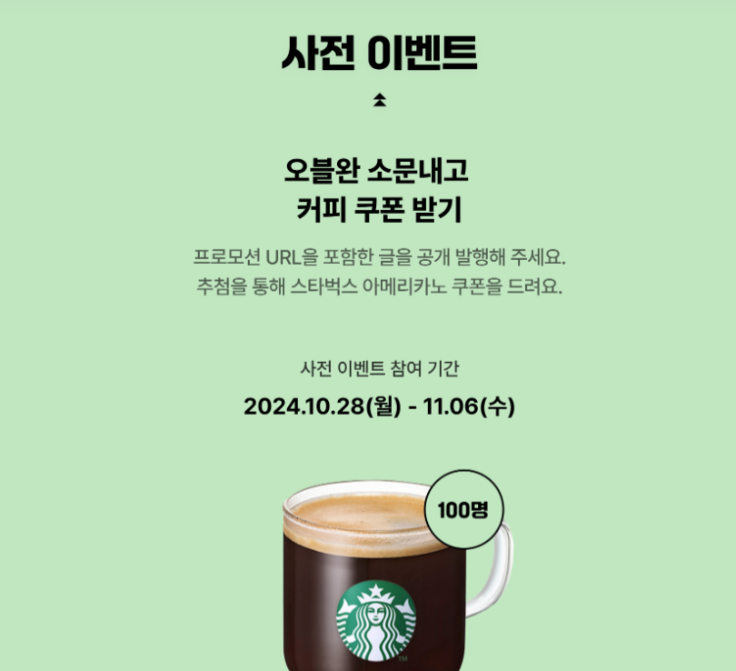 | 상품 | 스타벅스 아메리카노 쿠폰 (100명 추첨) |