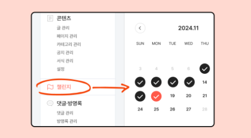 | 오블완 챌린지 일정 | 2024년 11월 7일(목) ~ 2024년 11월 27일(목) |