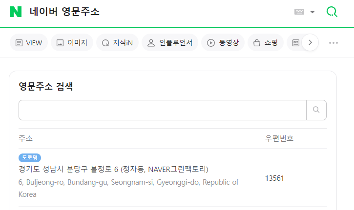 - 다음이나 네이버등 영문주소변경을 검색하면 변환해 주는 서비스를 제공하고 있습니다.
