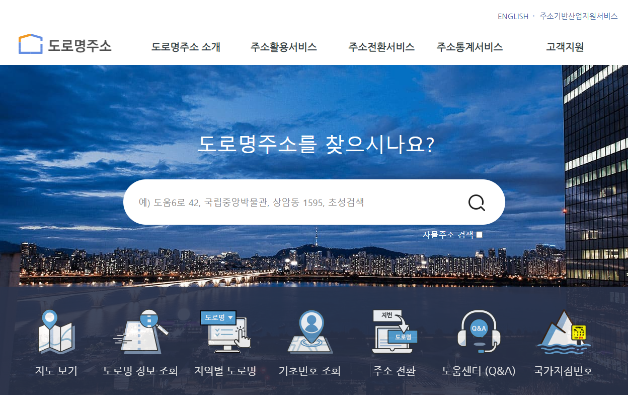 (1) 위 링크를 통해 도로명주소 홈페이지에 접속합니다.
