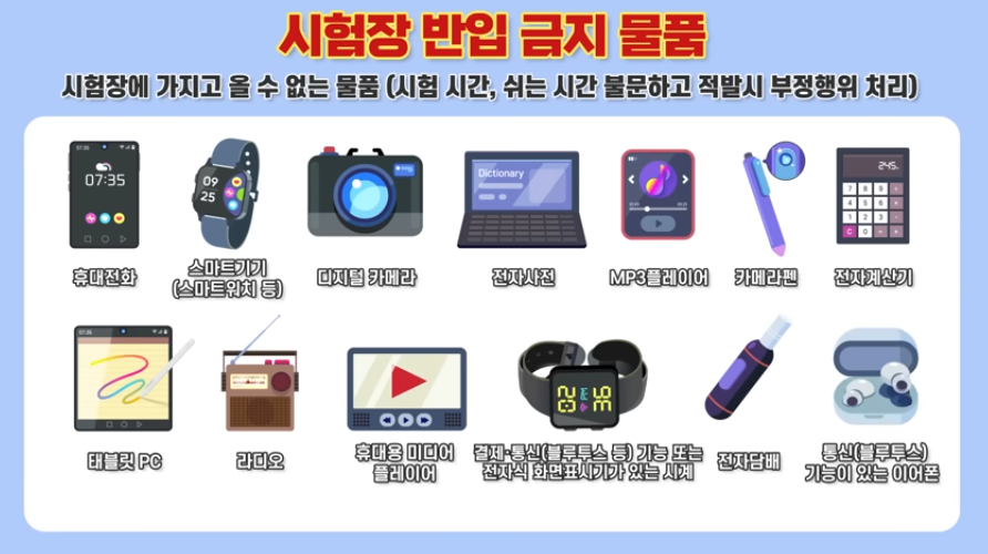 오랫동안 준비해 온 시험이니 꼭 불이익을 받지 않도록 유의사항은 한 번씩 꼭 미리 확인해 보세요.