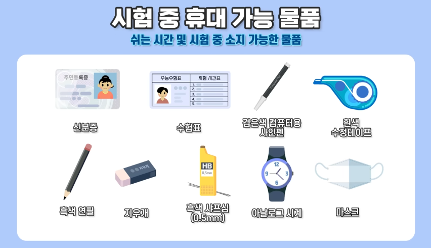 오늘은 곧 치러지는 2025학년도 수능 시험에 대한 유의사항에 대해서 알아보도록 하겠습니다.