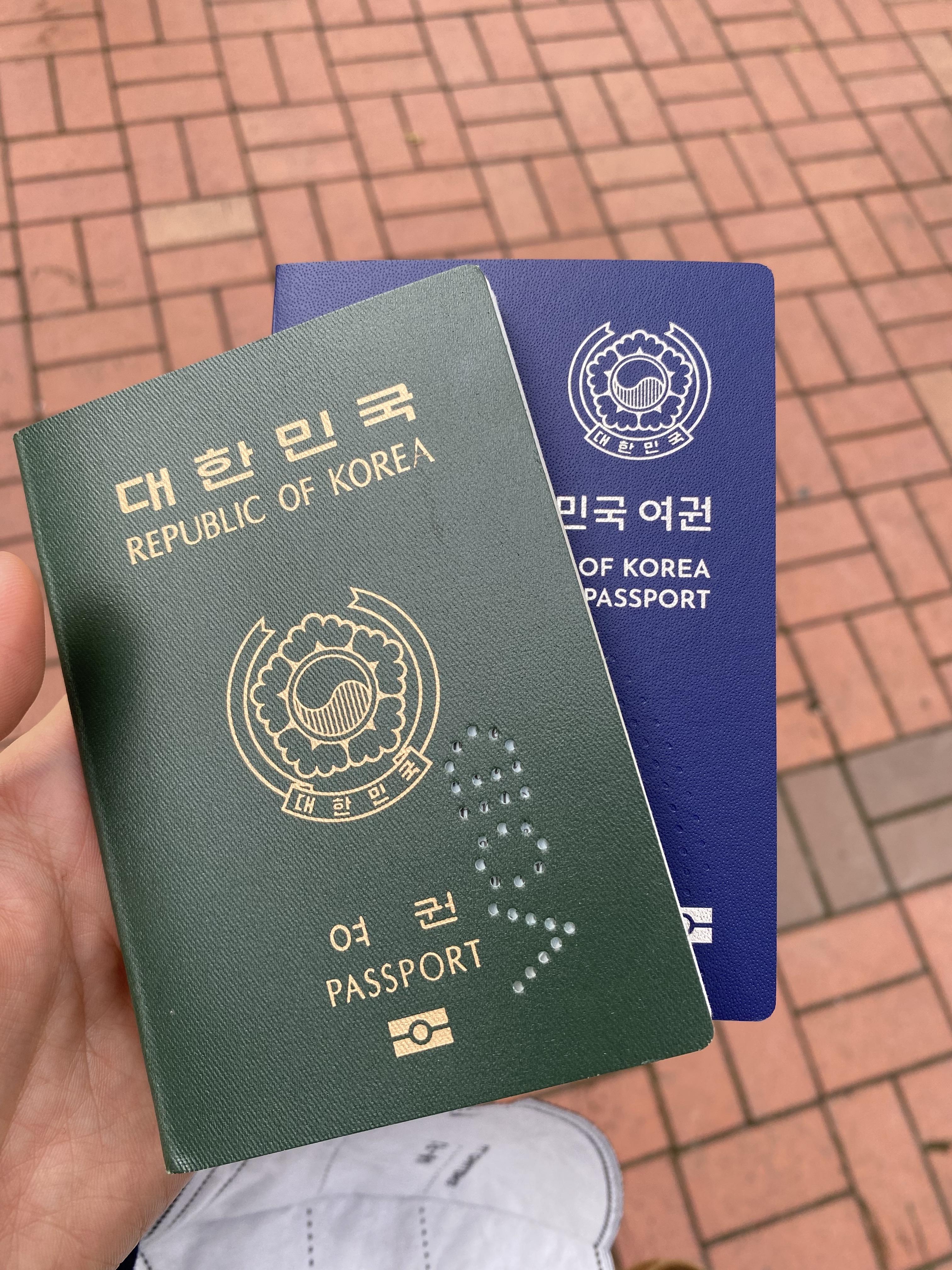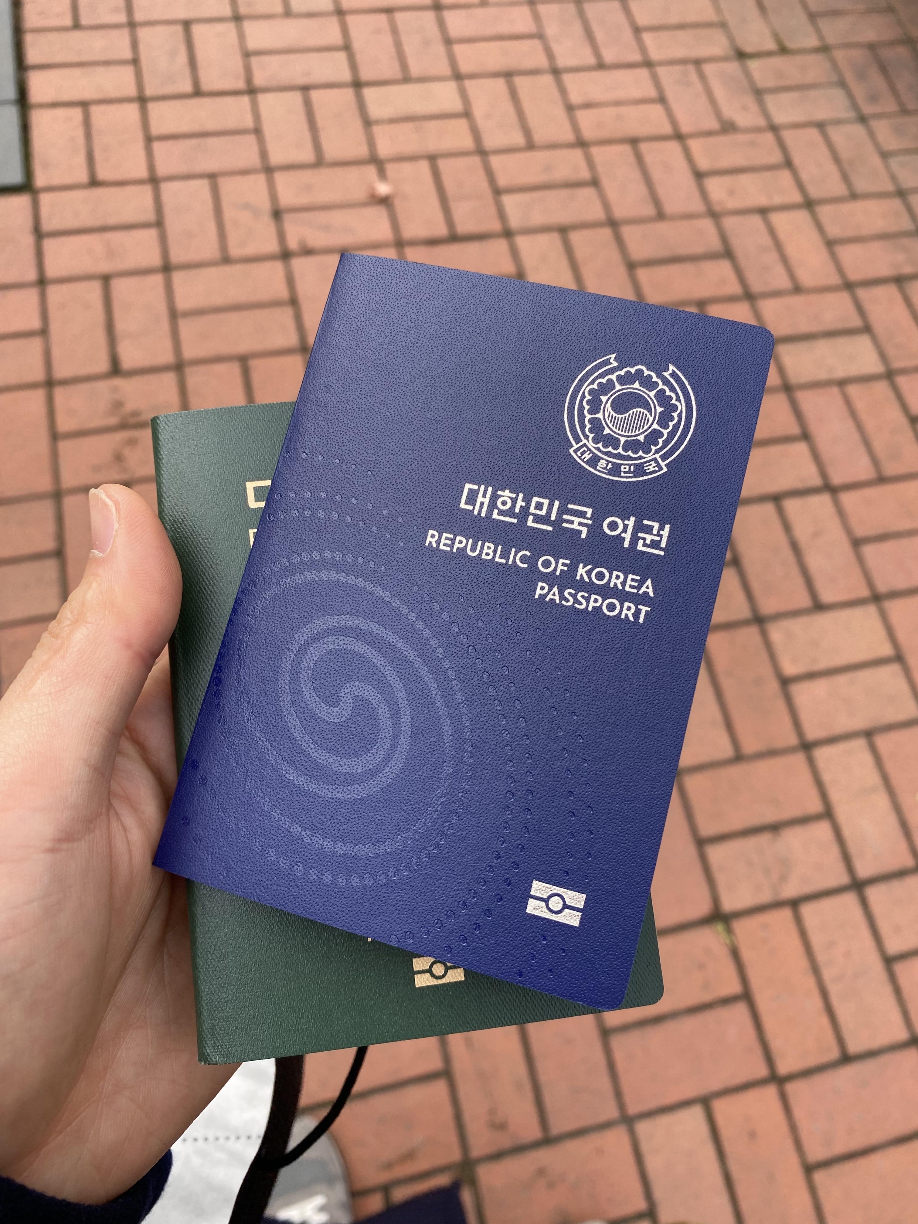 재발급 전 여권은 더이상 사용할 수 없도록 VOID로 구멍을 내고 돌려줍니다. 새로 재발급받은 이번 여권은 파란색으로 안에는 전자칩이 내장되어 있어서 보관하는데 조금 더 주의가 필요합니다.