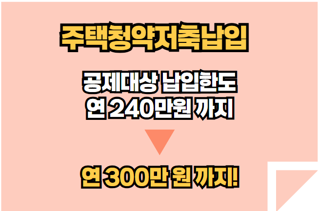 - 주택청약저축 납입 : 공제대상 납입한도가 연 240만 원에서 연 300만 원까지 확대