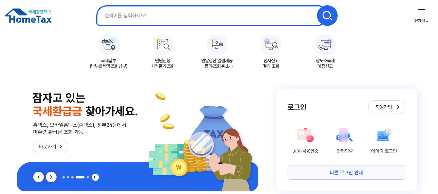 1️⃣홈택스 접속: 국세청 홈택스 웹사이트에 접속합니다. (www.hometax.go.kr)