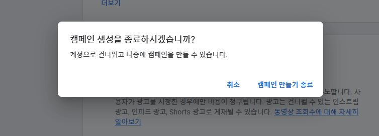 (3) 모두 건너뛰고 캠페인 만들기 종류 후 구글애즈를 재접속합니다.