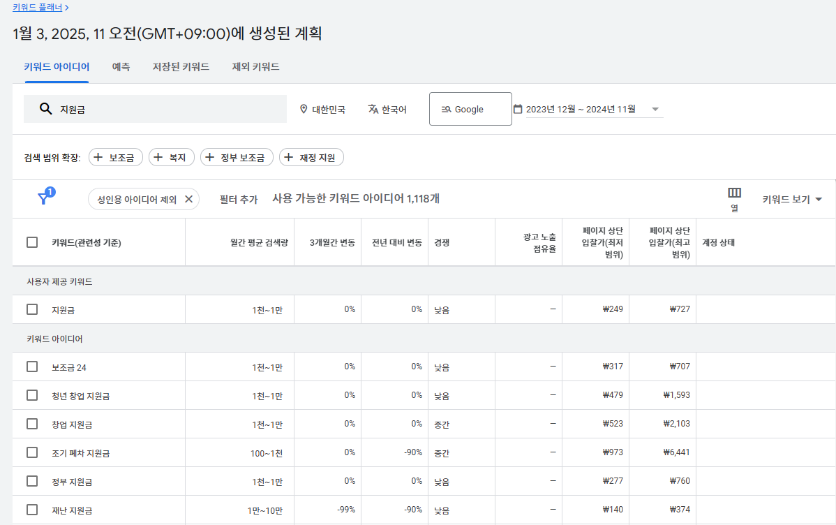여기까지 구글 애즈 키워드 플래너, 키워드 검색하는 방법에 대해서 알아보았습니다.
