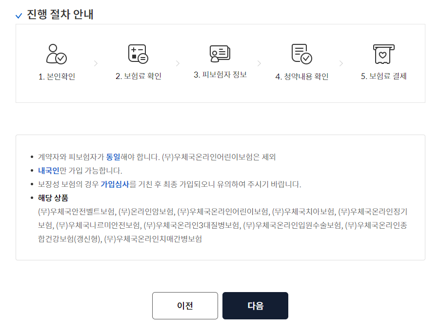 (1) 비대면으로 쉽게 가입이 가능한 상품으로 우체국 보험 홈페이지에 접속합니다.