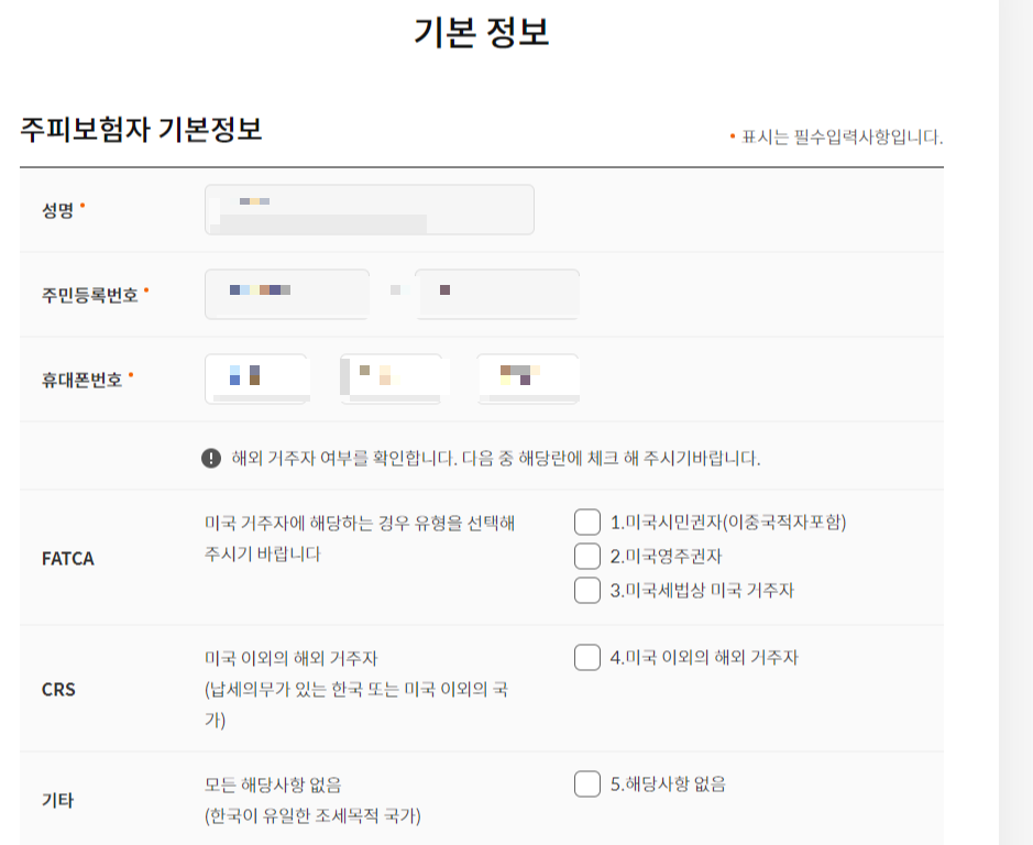 (3) 보험바로가입을 통해 본인확인, 보험료확인, 피보험자정보, 청약내용확인, 보험료 결제 절차로 진행이 됩니다.