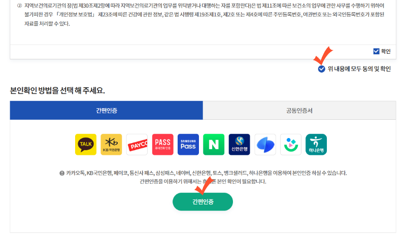 (3) 위 내용에 모두 동의 및 확인 후 간편 인증을 진행해 주세요.