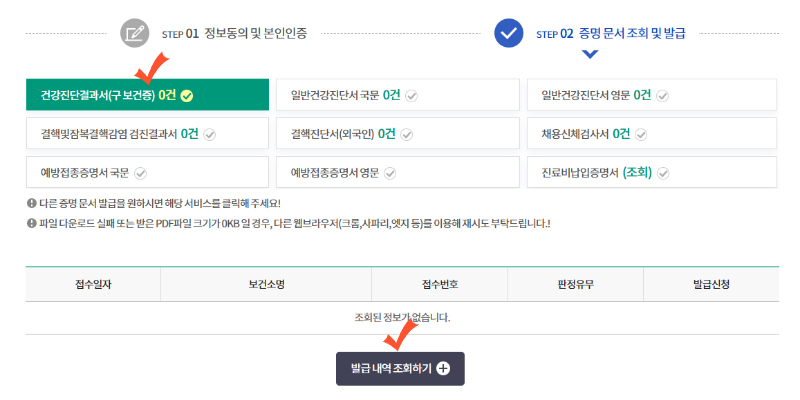 저는 현재 검진을 받지 않아 0건이지만, 발급을 위해 건강검진을 받았다면 해당 건수를 확인할 수 있습니다.
