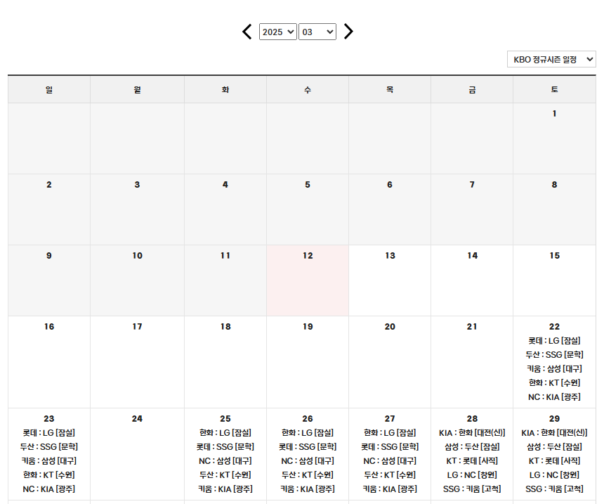 | 03.22(토) | 14:00시 | 롯데 vs LG | 잠실 |