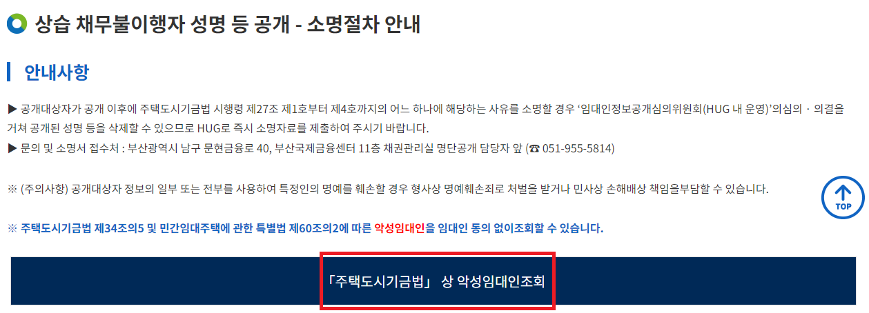 (2) 상습 채무불이행자 성명 등 공개는 국토교통부 홈페이지 또는 주택도시보증공사 홈페이지에서 열람하실 수 있습니다.