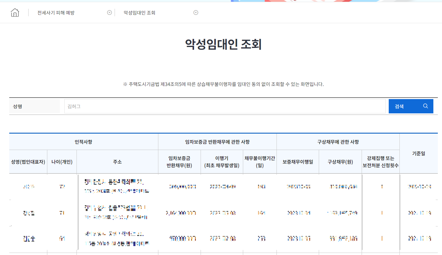 2. 악성임대인 조회하는 방법