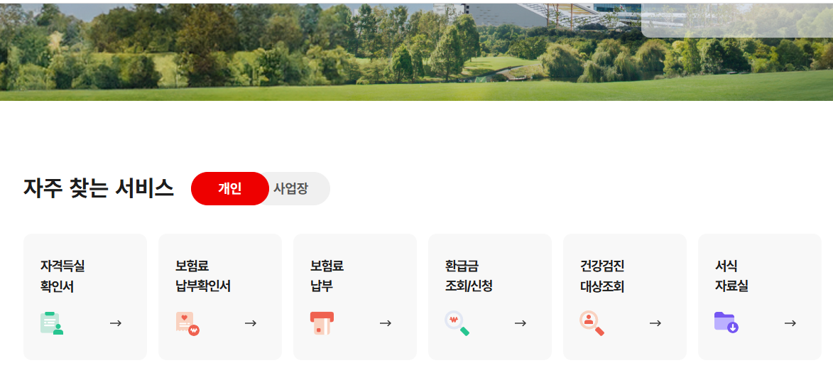 - 국민건강보험공단 홈페이지 접속