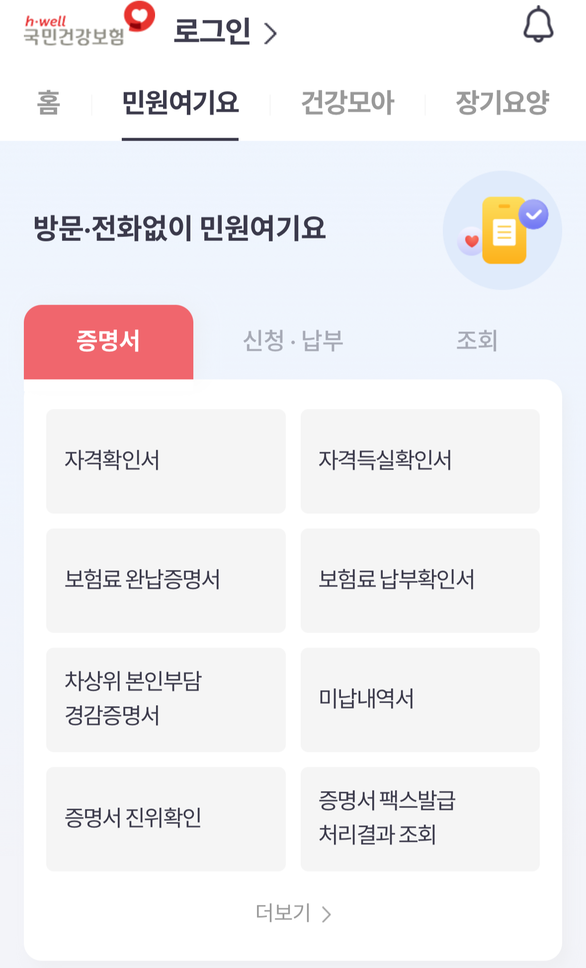 (앱스토어 또는 구글플레이에서 ‘건강보험’ 검색) - 로그인 후