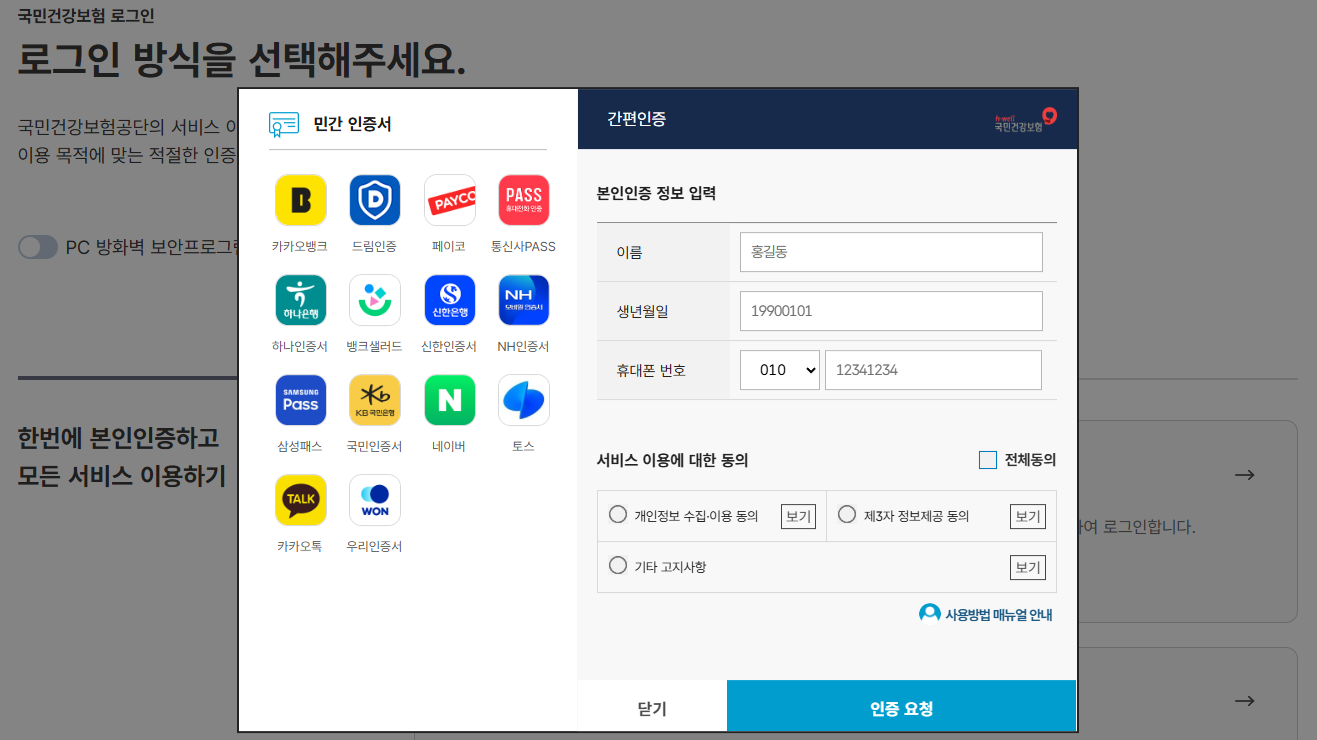(2) 접속 후 간편 인증을 통해 인증 후 로그인해 주세요.