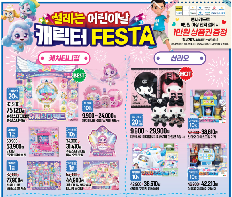 어린이날을 맞이하여 4/18~5/6 어린이날 페스타가 진행 중입니다.