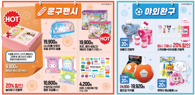 문구, 완구, 보드게임등 아이들이 또 좋아하는 많은 장난감 또는 문구류 등도 할인진행하고 있으니