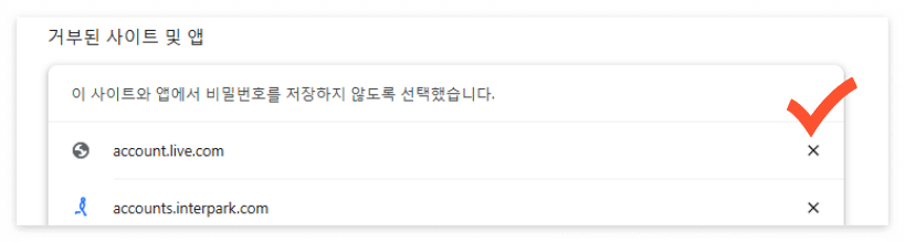 (4) 아래 거부된 사이트가 있다면, 삭제해 주세요.