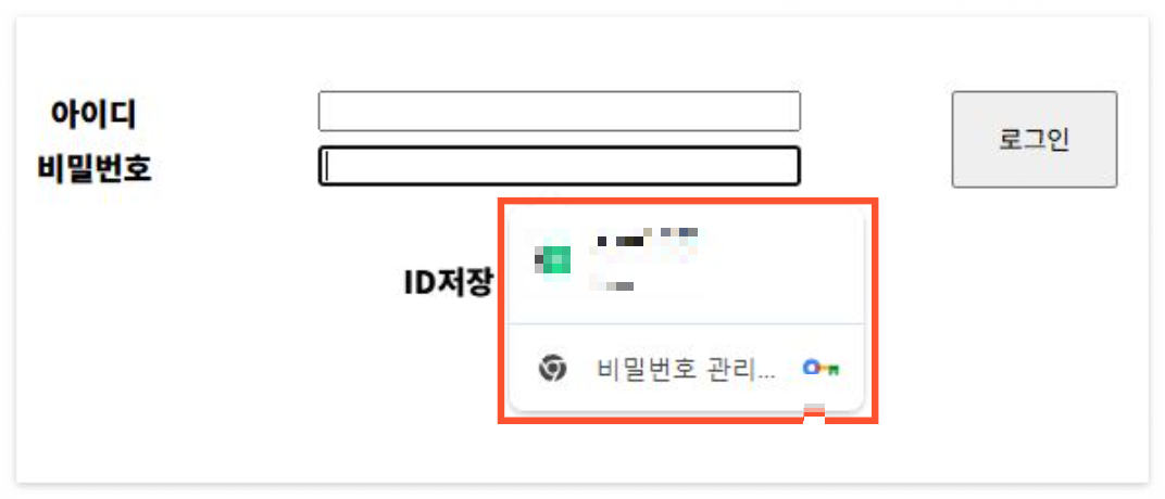 (6) 로그인 시 아래 저장된 아이디와 비밀번호를 확인할 수 있고 간단하게 클릭하여 로그인이 가능합니다.