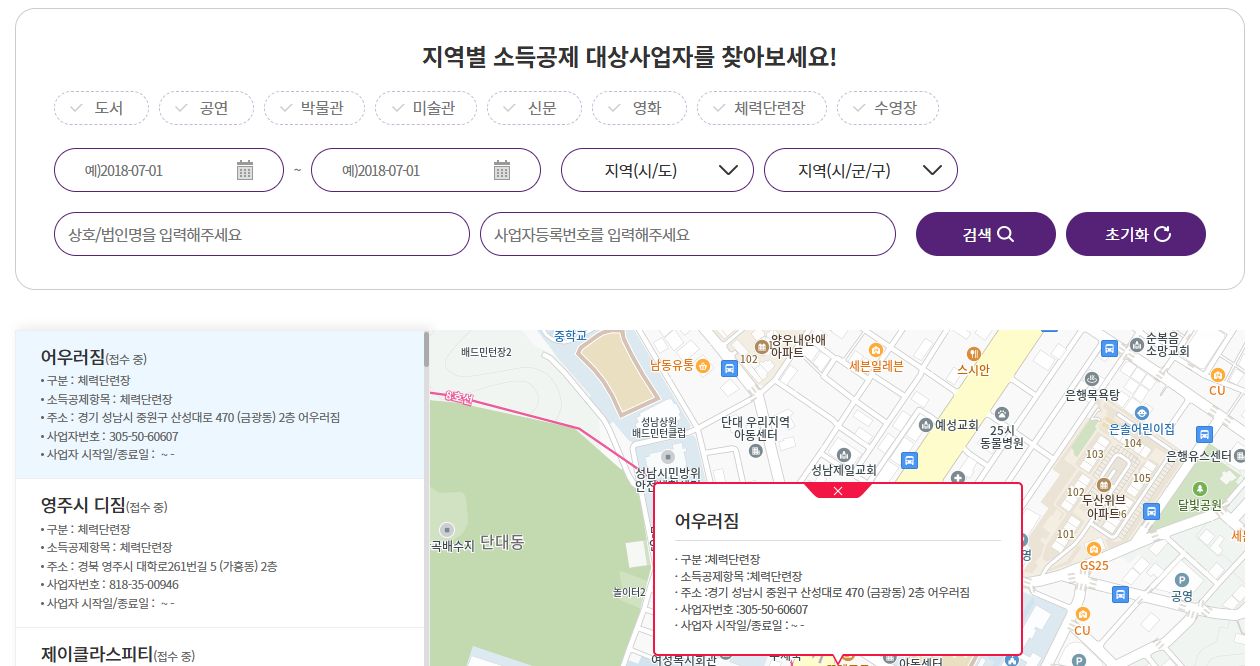 - 새로운 시설 등록을 원하는 사업자는 해당 누리집을 통해 신청할 수 있습니다.