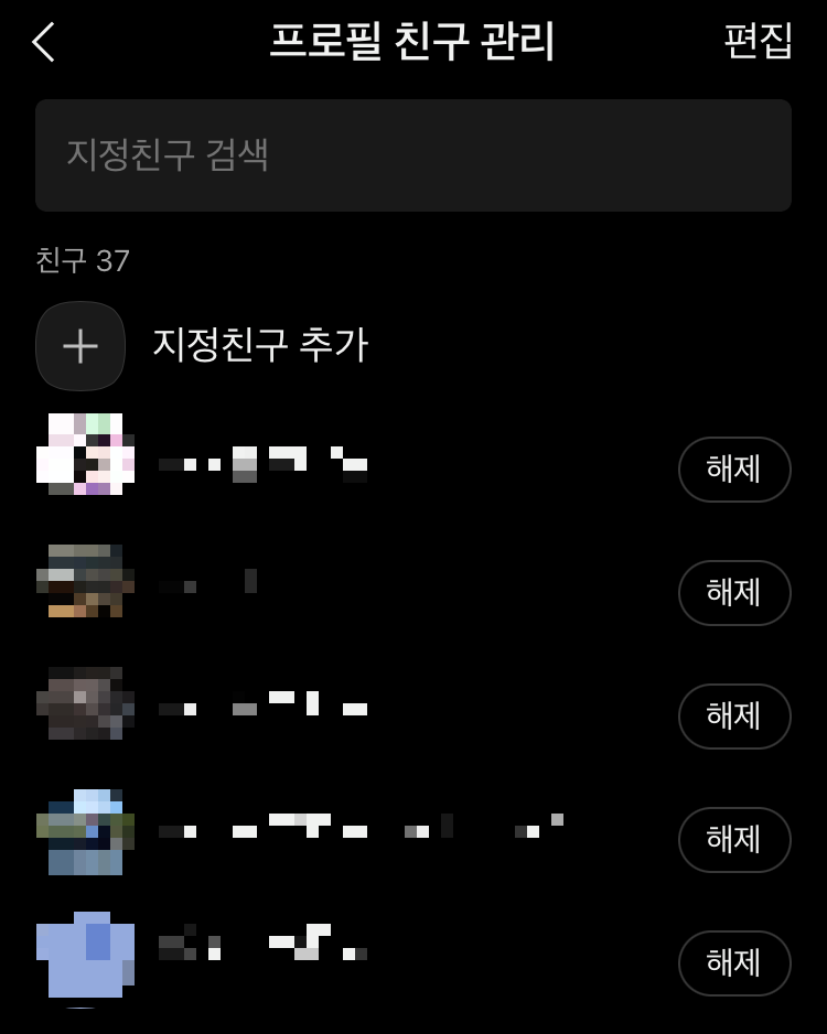 (6) 지정하면 아래처럼 지정한 친구 리스트가 보이고 지정된 친구는 지정된 프로필만 보게 됩니다.