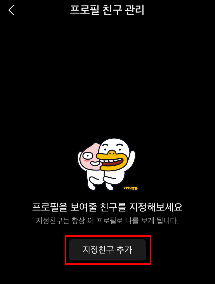 친구관리는 선택한 프로필을 보여줄 친구를 지정하며 지정한 친구는 항상 이 프로필을 보게 됩니다.
