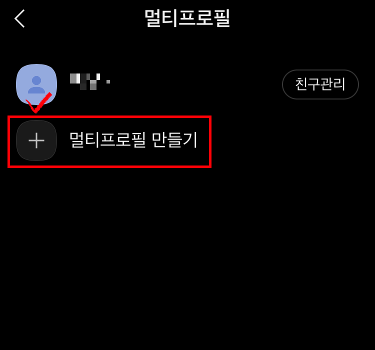 (5) 생성된 프로필 우측 친구관리를 클릭하면 친구관리를 할 수 있습니다.