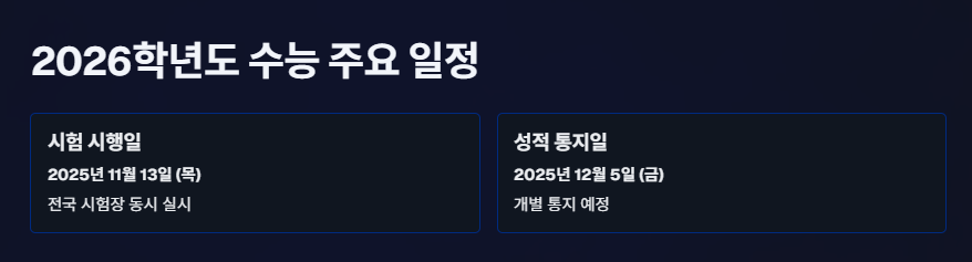 2026학년도 대학수학능력시험 주요 일정