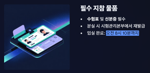 - 필수 물품: 신분증, 수험표