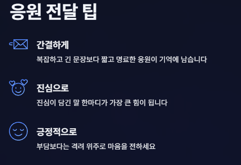 응원의 마음을 효과적으로 전달하기 위한 몇 가지 참고 사항을 안내합니다.