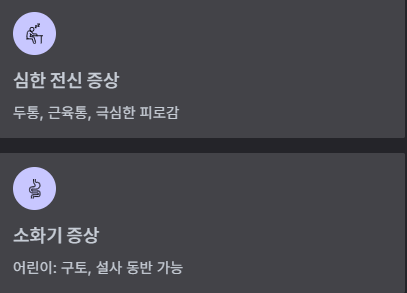 - 소화기 증상 (어린이): 소아의 경우 오심(메스꺼움), 구토, 설사 등 소화기 증상이 동반될 수 있습니다.