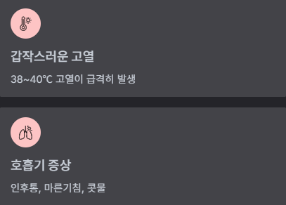 - 갑작스러운 고열: 38℃에서 40℃에 이르는 고열이 급격히 발생합니다.