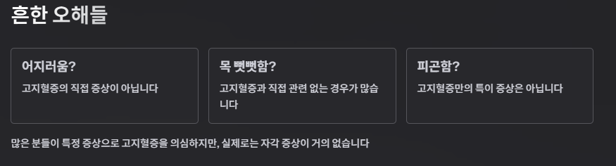 - 많은 분들이 고지혈증이 있으면 어지럽거나 목이 뻣뻣할 것이라 생각하지만, 이는 고지혈증의 직접적인 증상이 아닌 경우가 많습니다.