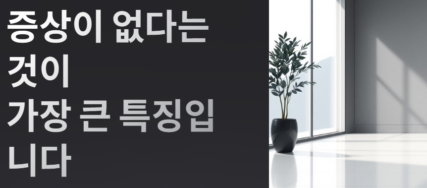 가장 큰 특징은 이러한 상태가 심각해지기 전까지는 특별한 자각 증상이 거의 없다는 점입니다.